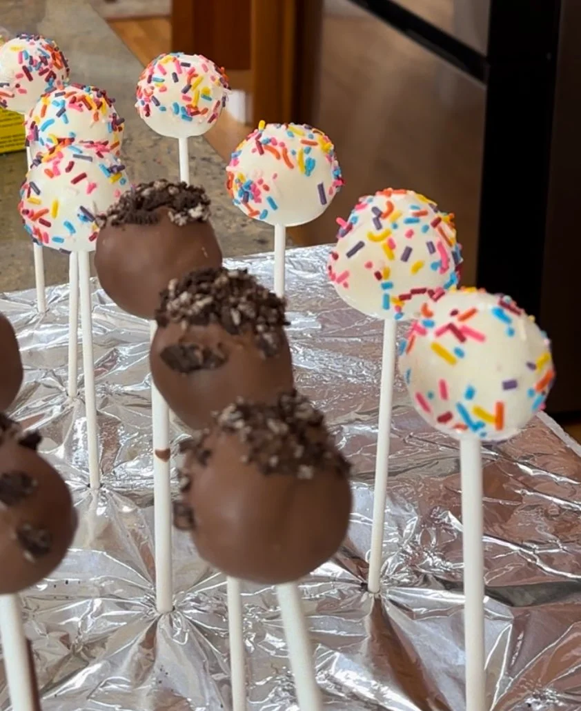 Homemade cake mixed with homemade frosting and dipped in chocolate coating to make a rich, truffle-like treat.